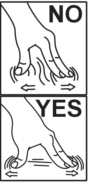 - Usando su mano libre, tire de su piel tensa a medida que alcanza longitudes más cortas para evitar que los pliegues de la piel entren en la cuchilla de la recortadora. Vea las ilustraciones para ver ejemplos de qué hacer y qué no hacer.