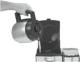 Detiene el flujo de café de la cesta cuando se retira la jarra de la placa calefactora, para que se pueda servir una taza a mitad de la preparación. - Jarra térmica