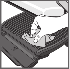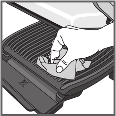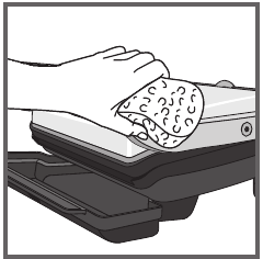 - Para limpiar la tapa de la parrilla, limpie con una esponja tibia y húmeda y seque con un paño suave y seco.