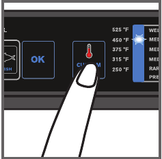 | Después del precalentamiento, he puesto la comida en la parrilla, pero el ciclo de cocción no se inicia. El indicador permanece encendido y el botón parpadea | La comida tiene un grosor superior a 1,5 pulgadas. | La comida no debe tener un grosor superior a 1 1/2 pulgadas. |