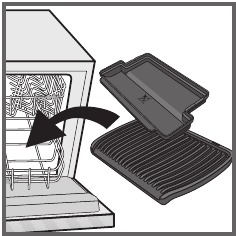 - Antes de limpiar, desbloquee y retire las placas para evitar dañar la superficie de cocción. La bandeja de goteo y las placas de cocción son aptas para lavavajillas.
