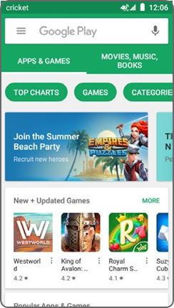 - Pulse una categoría para explorar aplicaciones, juegos, películas y música populares. O pulse la Search bar (Barra de búsqueda) para buscar un juego o una aplicación específicos.