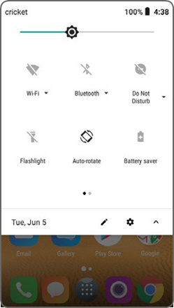 - Con el panel de notificaciones abierto, toca la parte superior de la pantalla de nuevo y arrastra hacia abajo para ver el menú de ajustes rápidos
