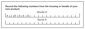 Cuando se ponga en contacto con la empresa, vuelva a pedir piezas o solicite servicio a un distribuidor autorizado, deberá proporcionar el modelo y los números de serie, que se pueden encontrar en la calcomanía ubicada en la carcasa de la unidad. Copie estos números en el espacio provisto a continuación.