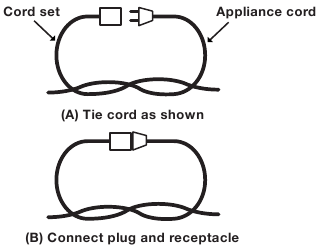 - Para evitar que el cable del aparato se desconecte del cable de extensión durante el funcionamiento, haga un nudo con los dos cables como se muestra en la Tabla 1.