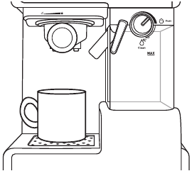 - Llene el depósito de leche hasta el nivel "MAX" con agua y vuelva a colocarlo en la unidad. Asegúrese de empujar firmemente el depósito de leche en su lugar hasta que se iluminen los botones de Cappuccino y Latte.