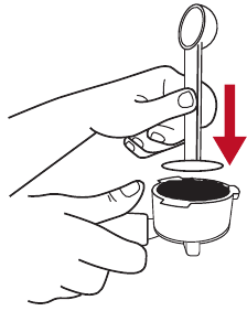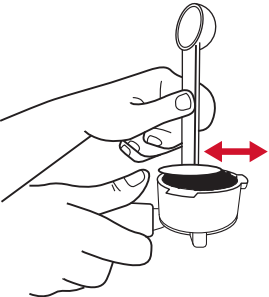 - Apisone y comprima el café molido de forma firme y uniforme. El café debe quedar 3 mm por debajo de la parte superior del filtro después de apisonarlo.