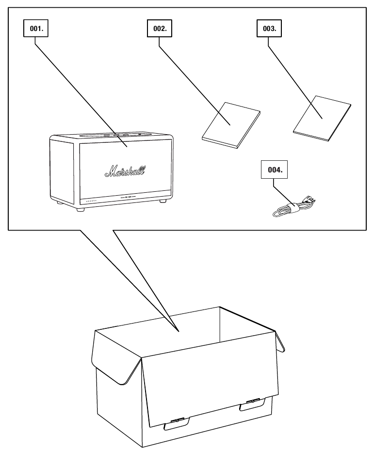 - 001. DESCARGUE LA APLICACIÓN MARSHALL VOICE Y SIGA LAS INSTRUCCIONES DE LA APLICACIÓN PARA CONFIGURAR SU ALTAVOZ.