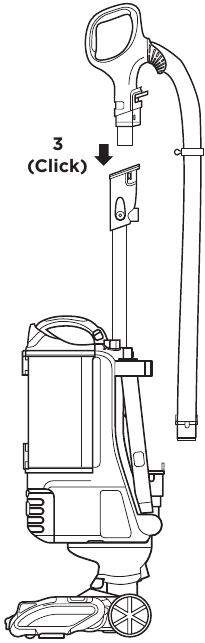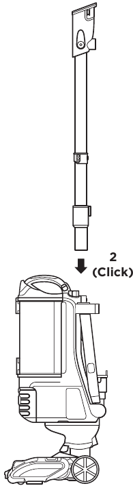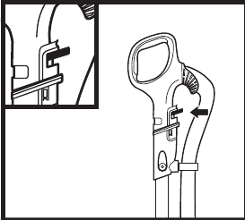 - Inserte el clip de la manguera en la parte posterior del mango hasta que encaje en su lugar.
