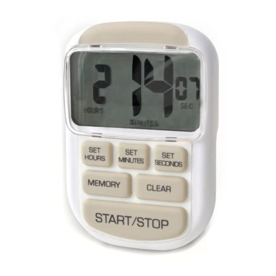 Es un temporizador de cuenta regresiva/ascendente. El rango máximo de conteo es de 23 horas, 59 minutos y 59 segundos. Luego, el temporizador cuenta regresivamente hasta 00:00:00, la unidad comenzará a alarmar y contará hacia arriba (esto le indicará al usuario cuánto tiempo adicional ha transcurrido desde que el temporizador comenzó a sonar). La alarma sonará continuamente (a 75db) durante 1 minuto o hasta que el usuario presione el botón "START/STOP" (INICIO/PARADA).