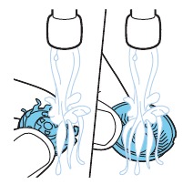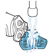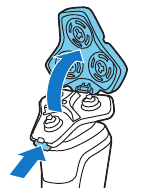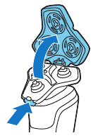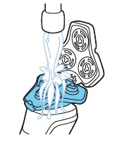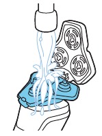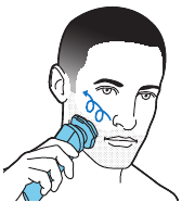 - Mueva los cabezales de afeitado sobre la piel con movimientos circulares para atrapar todos los pelos que crecen en diferentes direcciones. Asegúrese de que cada cabezal de afeitado esté totalmente en contacto con la piel. Ejerza una presión suave para un afeitado apurado y cómodo. Nota: No presione demasiado, ya que puede causar irritación de la piel.