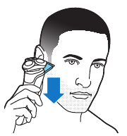 - Sujete el recortador perpendicular a la piel y mueva el aparato hacia abajo mientras ejerce una presión suave.