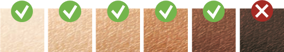en la tabla "Tonos de piel adecuados" al inicio del manual de usuario), para evitar que desarrolles reacciones cutáneas. La luz "LISTO para disparar el flash" parpadeará en naranja para indicar si el tono de piel es demasiado oscuro.