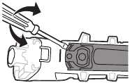 - Inserte un destornillador de cabeza plana entre el panel frontal y el recortador e inclínelo hasta que se suelte el panel frontal. Doble el panel frontal hacia delante.