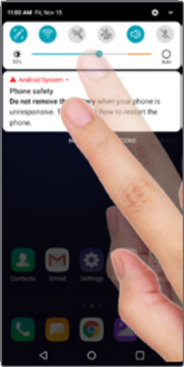 - Desliza el dedo hacia abajo desde la parte superior de cualquier pantalla de inicio para acceder al panel de notificaciones. Desliza el dedo hacia abajo una vez más para revelar opciones adicionales.