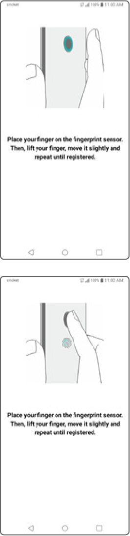- Escanea tu huella dactilar colocando el dedo en la tecla trasera (Rear Key). Levanta y mueve ligeramente hasta que esté completamente registrada.