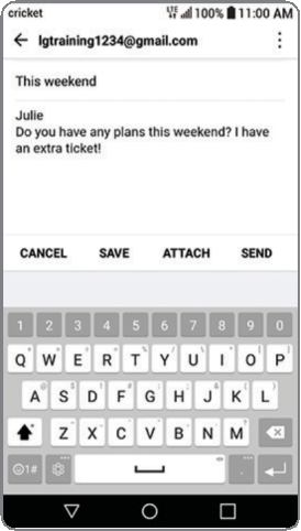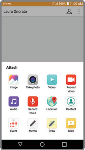 - Para adjuntar archivos, toca ADJUNTAR (ATTACH) y sigue las instrucciones en pantalla.