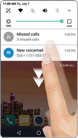 - Borra las notificaciones individuales deslizando hacia la izquierda o hacia la derecha en la alerta, o toca BORRAR (CLEAR) para eliminar todas las notificaciones.