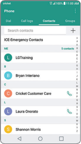 - Contactos (Contacts): Llama a un contacto guardado de tu libreta de direcciones.