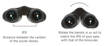 La distancia interpupilar (DIP) es la distancia entre el centro de las pupilas izquierda y derecha. Haga coincidir la DIP de sus ojos y su binocular girando los tubos hacia adentro o hacia afuera hasta que vea una sola imagen sin sombreado.