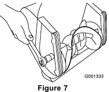 - Use una llave de 9/16 pulgadas para quitar el perno en el lateral de la carcasa. (Consulte la Fig. 7)