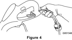 - Inserte el bucle a través del orificio en la parte posterior del mango superior, asegurando el bucle alrededor del gancho. (Consulte la Fig. 4)