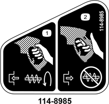 El contacto de la mano con las cuchillas giratorias del rotor dentro de la rampa de descarga es la causa más común de lesiones asociadas con los quitanieves. Nunca use la mano para limpiar la rampa de descarga.