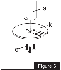 - Instale la placa base de arandela (K) en el poste (A) utilizando los pernos M5x14 (E) y apriete con la llave Allen (M), consulte la figura 6.