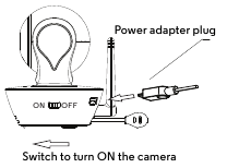 Conecte el enchufe pequeño del adaptador de corriente a la unidad del bebé y el otro extremo a una toma de corriente adecuada. Utilice únicamente el adaptador adjunto (5 V CC/1500 mA). Asegúrese de que el interruptor de encendido/apagado esté en la posición "ON".