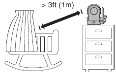 - Muude elektroonikaseadmete häirete vältimiseks asetage beebimonitor vähemalt 3 jala (1 meetri) kaugusele seadmetest, nagu juhtmevabad ruuterid, mikrolaineahjud, mobiiltelefonid ja arvutid.