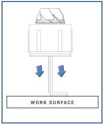 Sel hetkel on kooniline tera ja hoidik masinasse sisestatud ja enam nähtavad (joonis H).