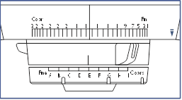 - Joondage jahvatuse reguleerimisseadme sinine paigaldus-/eemaldamisindikaator masina paremal küljel oleva sinise paigaldus-/eemaldamisindikaatoriga (joonis F).