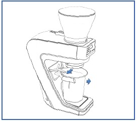 - Võtke jahvatuse reguleerimisseade kätte, haarake teise käega koonilisest terast ja hoidikust ning tõmmake/kangutage need lahti. (joonis I)