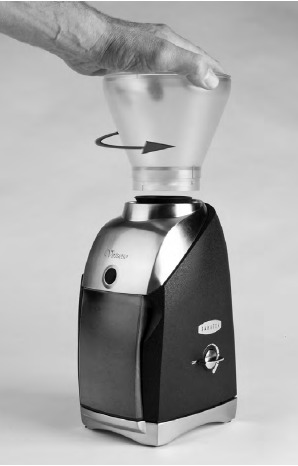 Asetage Virtuoso™ tasasele pinnale ja ühendage see ainult õige pinge ja vahelduvvoolu pistikupessa. Eemaldage oamahuti kaas, tõstes selle ära. Valage soovitud kogus röstitud terveid kohviube oamahutisse, maksimaalselt 8 untsi. Pange kaas tagasi. Veenduge, et jahvatatud kohvi anum on täielikult sisestatud.