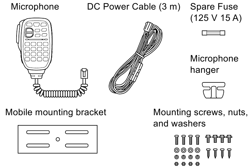 | Voolutarve (13.8 V DC juures: ligikaudne) | TX: 65 W juures 11 A (alla 9 A 24 W juures TPE versiooni puhul ja alla 9 A 23 W juures SAU versiooni puhul) RX: Ooterežiim 0.4 A Maksimaalne heli 1.5 A |