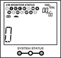 MONITORI OLEK – Kui koodilugeja LCD-ekraanil kuvatakse null (mis näitab, et sõiduki arvutis ei ole DTC-sid), kuid kollane LED põleb, näitab see olekut "Monitor Has Not Run" (Monitor ei ole töötanud). See tähendab, et mõned sõiduki monitorid ei ole veel oma diagnostilist enesetestimist lõpetanud. Seda tingimust kinnitab üks või mitu vilkuvat monitori ikooni LCD-ekraanil. Vilkuv monitori ikoon tähendab, et monitor ei ole veel töötanud ja oma diagnostilist enesetestimist lõpetanud. Kõik pidevad monitori ikoonid on oma diagnostilise enesetestimise lõpetanud.