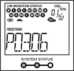 - PUNANE LED - Näitab, et ühes või mitmes sõiduki süsteemis on probleem. Punast LED-i kasutatakse ka selleks, et näidata, et DTC-d on olemas. DTC-d kuvatakse autolugeja LCD-ekraanil. Sel juhul süttib sõiduki armatuurlaual rikkeindikaator ("Check Engine") pidevalt.