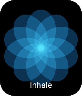 Minge kella App List (Rakenduste loendisse) ja avage Breathing (Hingamine) rakendus, et teha hingamisteede lõõgastustreeningut hingamisanimeerimise juhiste alusel. Kogu treeningu kestust saab määrata Breathe (Hingamine) avakuval. Vaikimisi on kestus 1 minut.