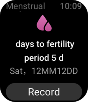 Cycle Tracking (Tsükli jälgimise) rakendus saab jälgida naiste menstruatsiooniperioode, et tuvastada mustreid ja ennustada järgmist tsüklit. See funktsioon ei ole rasestumisvastane vahend ega meditsiiniline nõuanne. Esimest korda Cycle Tracking (Tsükli jälgimise) rakenduse kasutamisel peate sisestama oma viimase menstruatsiooni algusaja, perioodi kestuse ja menstruaaltsükli kestuse. Samuti saate need andmed sisestada Zepp rakendusse ja sünkroonida need kellaga.