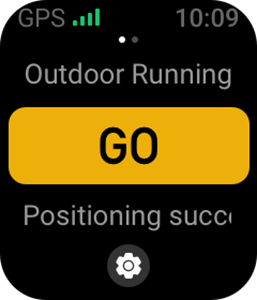Kui valite Outdoor Sports (Väljas sport), oodake, kuni GPS-positsioneerimine on Workout Preparation (Treeningu ettevalmistamise) ekraanil edukas. Seejärel puudutage GO (MINE), et treeningut alustada. See võimaldab kellal salvestada täielikud treeninguandmed.
