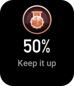 Libistage Workout Preparation (Treeningu ettevalmistamise) ekraanil vasakule, et minna Activity Goal Settings (Aktiivsuse eesmärgi seadete) ekraanile. Saate seada erinevate treeningu tüüpide jaoks mitmesuguseid eesmärke, nagu tempo, kestus, vahemaa ja kalorite tarbimise eesmärk. Kui olete treenimise ajal saavutanud 50%, 80% ja 100% seatud eesmärgist, teavitab kell teid eesmärgi täitmise edenemisest.