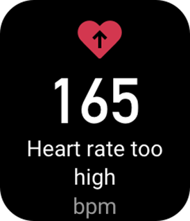 Kui teie südame löögisagedus ületab treenimise ajal eelmääratud maksimaalset väärtust, vibreerib kell, et teid teavitada ja kuvab teie praeguse südame löögisageduse. Enne kui kasutate funktsiooni Heart rate too high alert (Südame löögisagedus liiga kõrge hoiatus), minge Workout Settings (Treeningu seadete) ekraanile, et lülitada sisse Safe Heart Rate Reminder (Ohutu südame löögisageduse meeldetuletus).