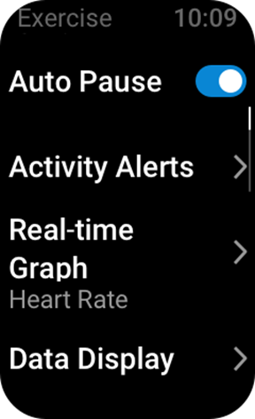 Minge Workout Preparation (Treeningu ettevalmistamise) ekraanile ja puudutage ekraani alumises osas Workout Settings (Treeningu seaded). Saate valida, kas lubada treenimise ajal vajadusel järgmised funktsioonid: Auto Pause (Automaatne paus), Heart Rate Alert (Südame löögisageduse hoiatus), Pace Alert (Tempo hoiatus), Distance Alert (Vahemaa hoiatus).