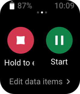 - Treeningu ekraanil vajutage ja hoidke treeningu lõpetamiseks füüsilist nuppu all.