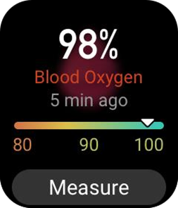 - Aktiveerige kell, vajutage külgnuppu, et minna app list (rakenduste loendisse) ja valige SpO2 rakendus, et alustada vere hapnikusisalduse mõõtmist.