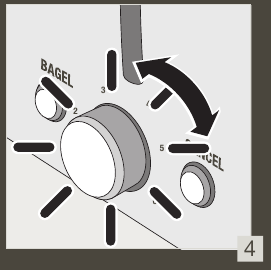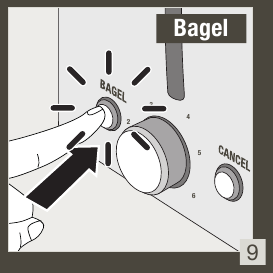 Röstril on eelprogrammeeritud BAGEL (saiake) funktsioon, mis röstib BAGEL'i lõigatud külgedelt ja soojendab seda väljastpoolt.