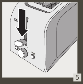 - 4 viilu mudel: Kui röstime ainult ühte või kahte leivaviilu, vajutage röstimishoob alla sellel küljel, kuhu leiva panite. Kui röstime kolme või nelja leivaviilu, vajutage alla mõlemad röstimishoovad.