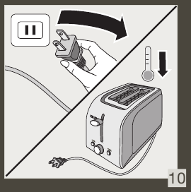 - Kui leib jääb röstri sisse kinni, eemaldage pistik seinakontaktist, laske seadmel täielikult jahtuda ja eemaldage leib ettevaatlikult röstrist.