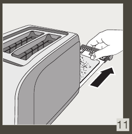 - Ärge proovige röstida leiba koostisosadega, mis sulavad või tilguvad rösterisse (külmutatud leivad või täidisega leivad), ja ärge röstige väga väikeseid leivatükke või krutoone, kuna see võib seadet kahjustada või põhjustada tulekahju.