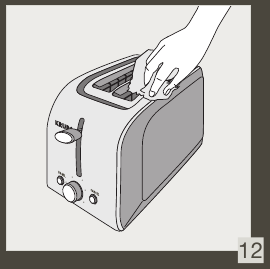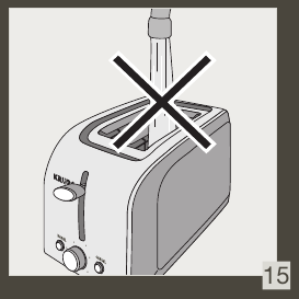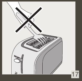 - Kui leib kiilub pärast röstimist piludesse kinni, lülitub seade automaatselt välja. Eemaldage kohe pistik pistikupesast ja oodake, kuni röster on jahtunud, enne kui proovite seda eemaldada.